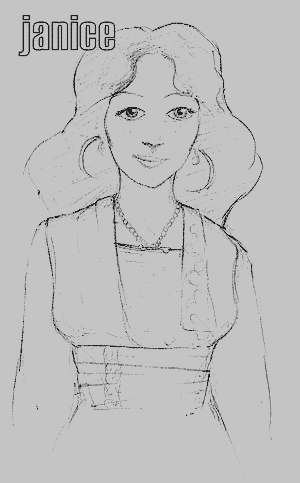 ![]() The main character has a half sister, Janice, who he last met when he was 11 years old. She died when he was 13. She is 12 years older than he is. She was a spiritualist, and although the main character will not come into contact with her, he will meet people that she knew. She was 25 when she died, and died in a shuttle accident more or less where the station is now. She died there before the station was built. The main character does not like to admit that he has a half sister because it is something his father is ashamed of. (The situation was a mess on the fathers part.) Physical Description: Average height. Long dark curly hair. Lots of hair. Dark eyes. No glasses. Wears robes and beads and lots of jewelry. Wears loop earrings. Wears lots of rings. Multicolored painted nails. Has a generally mismatched look. Clothing is very colorful. 25 years old when she died.